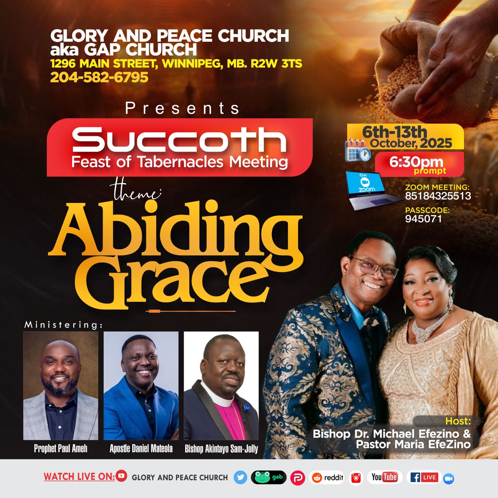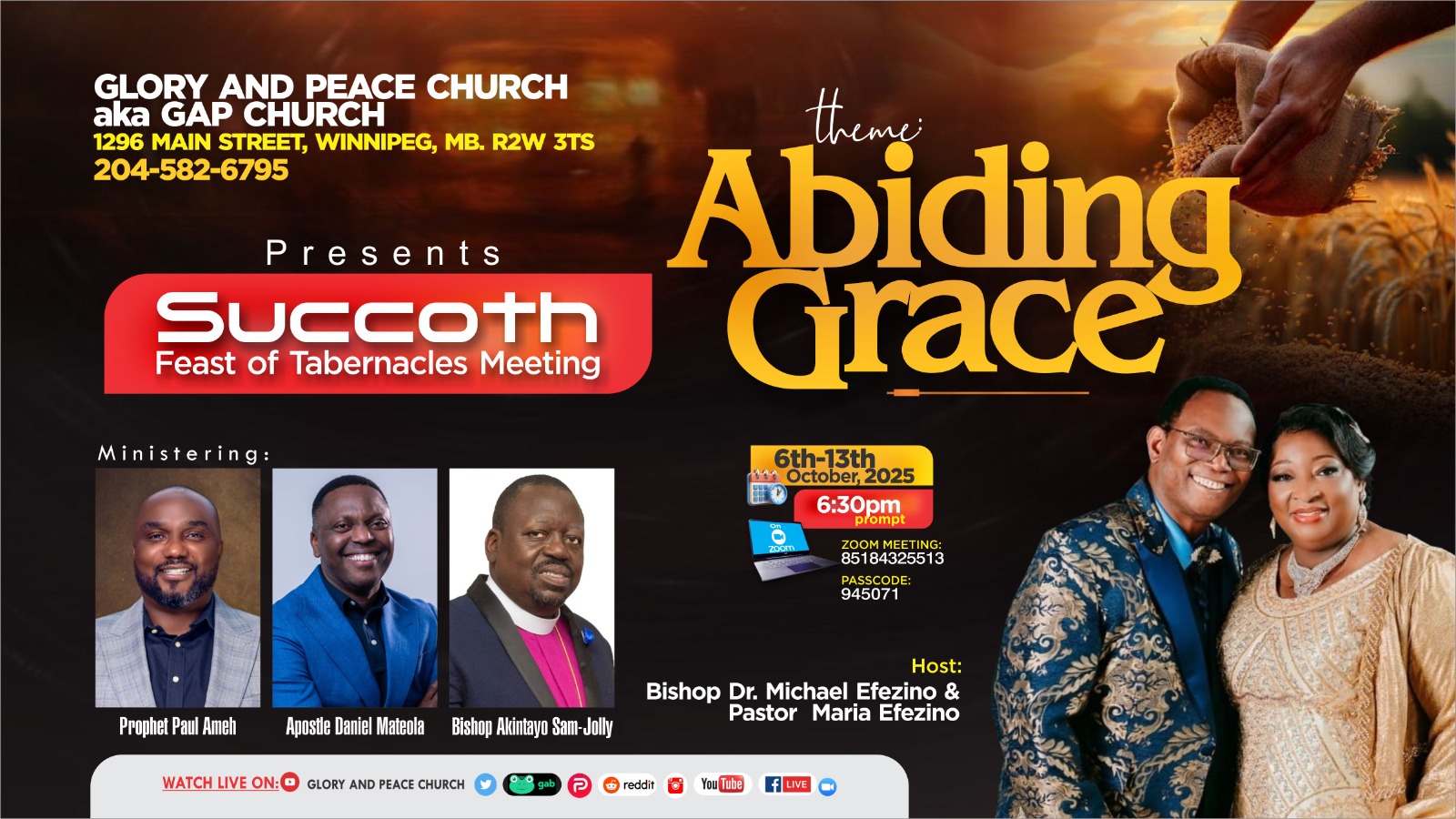 Glory and Peace 1296 Main Street, WinnipegSuccoth - Feast of Tabernacles Join us in person or online on the different platforms: ZOOM: https://us02web.zoom.us/j/85184325513?pwd=M1N1SmV0enhFbm1lRmdIOVV2Q2grQT09 ZOOM Meeting: 85184325513 | Passcode: 945071 WEBSITE: http://gloryandpeace.com/sermon FACEBOOK: http://facebook.com/gapint YOUTUBE: http://youtube.com/gloryandpeaceci IN-PERSON: 1296 Main Street Winnipeg, MB R2W 3T5 Canada We look forward to seeing you! Tel: 1 (204) 582-6795 [email protected] 1296 Main Street Winnipeg, MB R2W […]