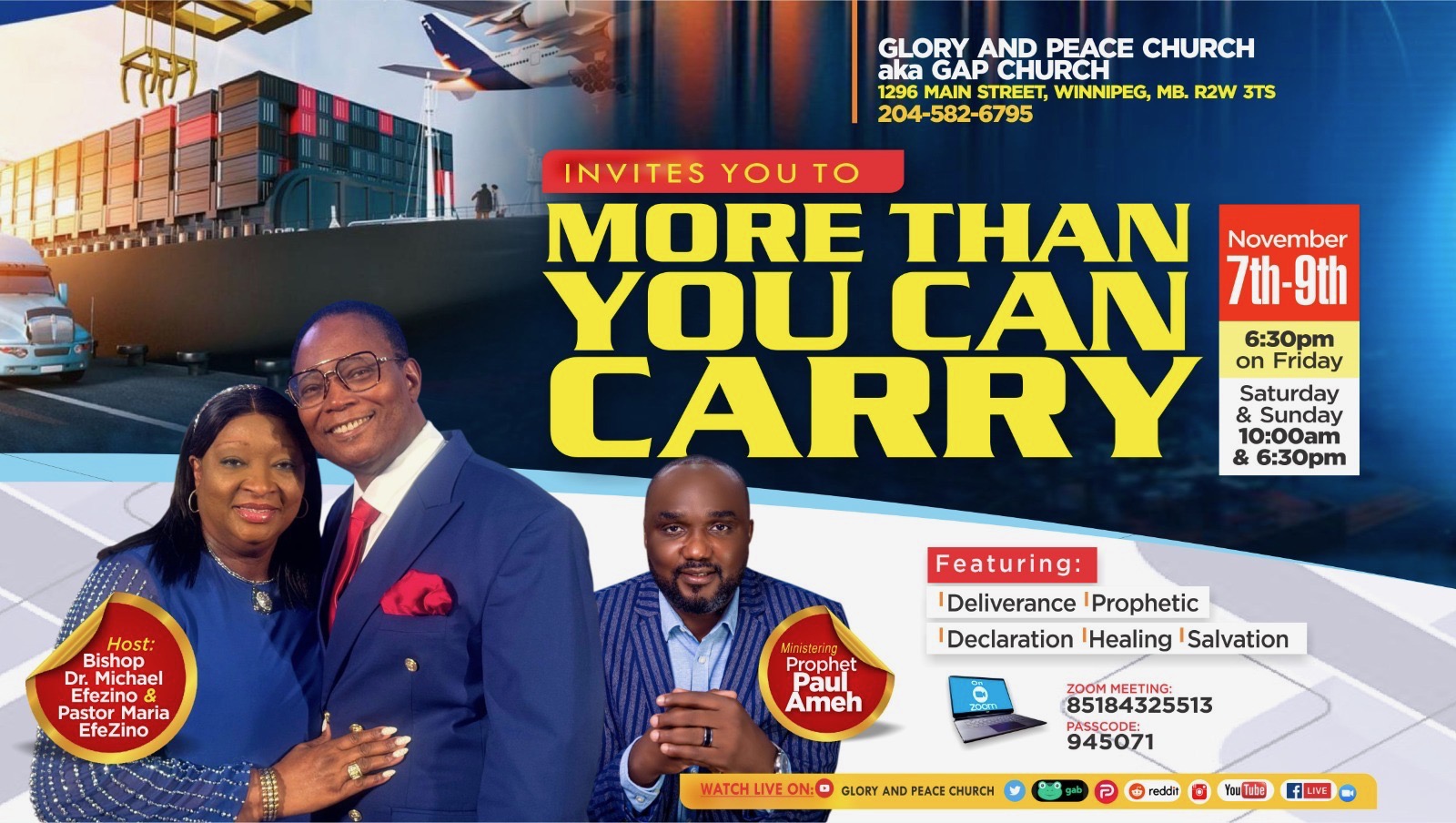 We warmly welcome you to Glory & Peace Church International – a ministry for all people, of all nations! We earnestly believe that miracles happen when someone cares. And we care about you! Join us on Sundays at 10 a.m. and 7 p.m., Wednesdays at 7 p.m., and Fridays at 7 p.m. You can also watch previous sermons online. Come, let us worship together!